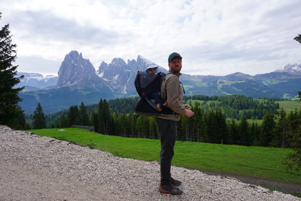 A vous de faire le choix, nous on a fait les deux ! Vous pouvez aussi rejoindre le panorama d’Ortisei (Localisation: Sporthotel Sonne) depuis Compatsch en 1h30 de marche. Ce qui se fait en une journée, pour nous c’était beaucoup avec le petit monstre !